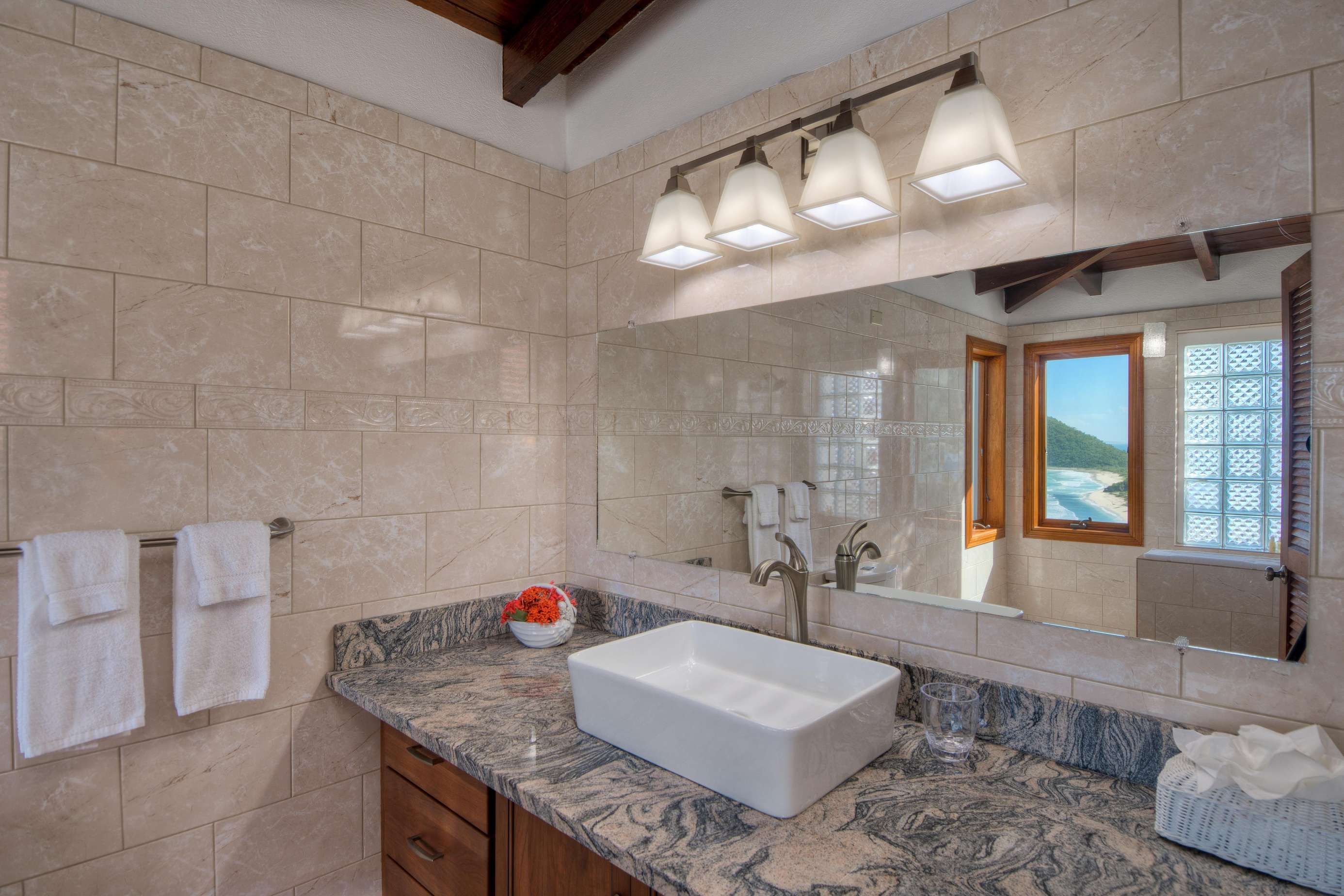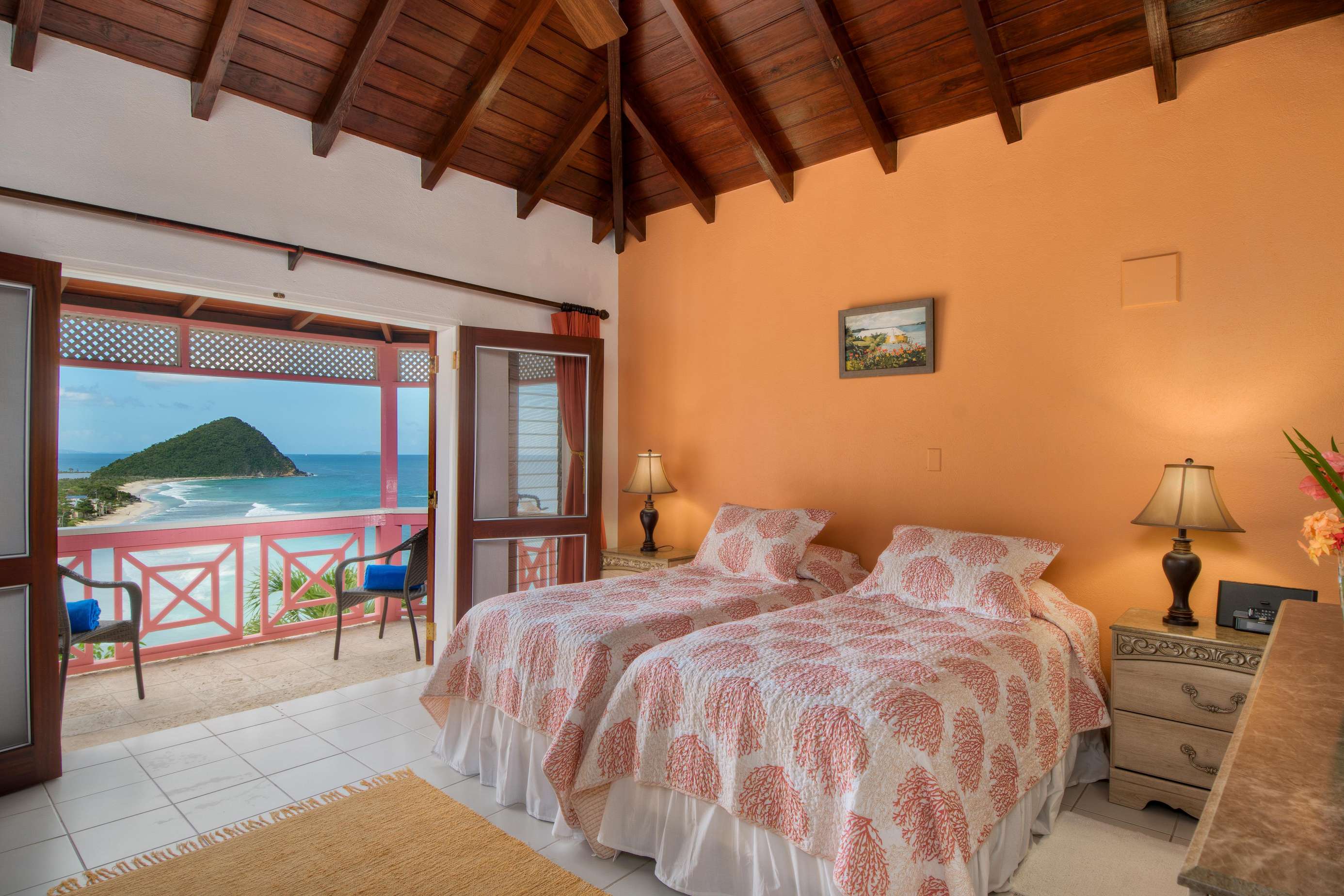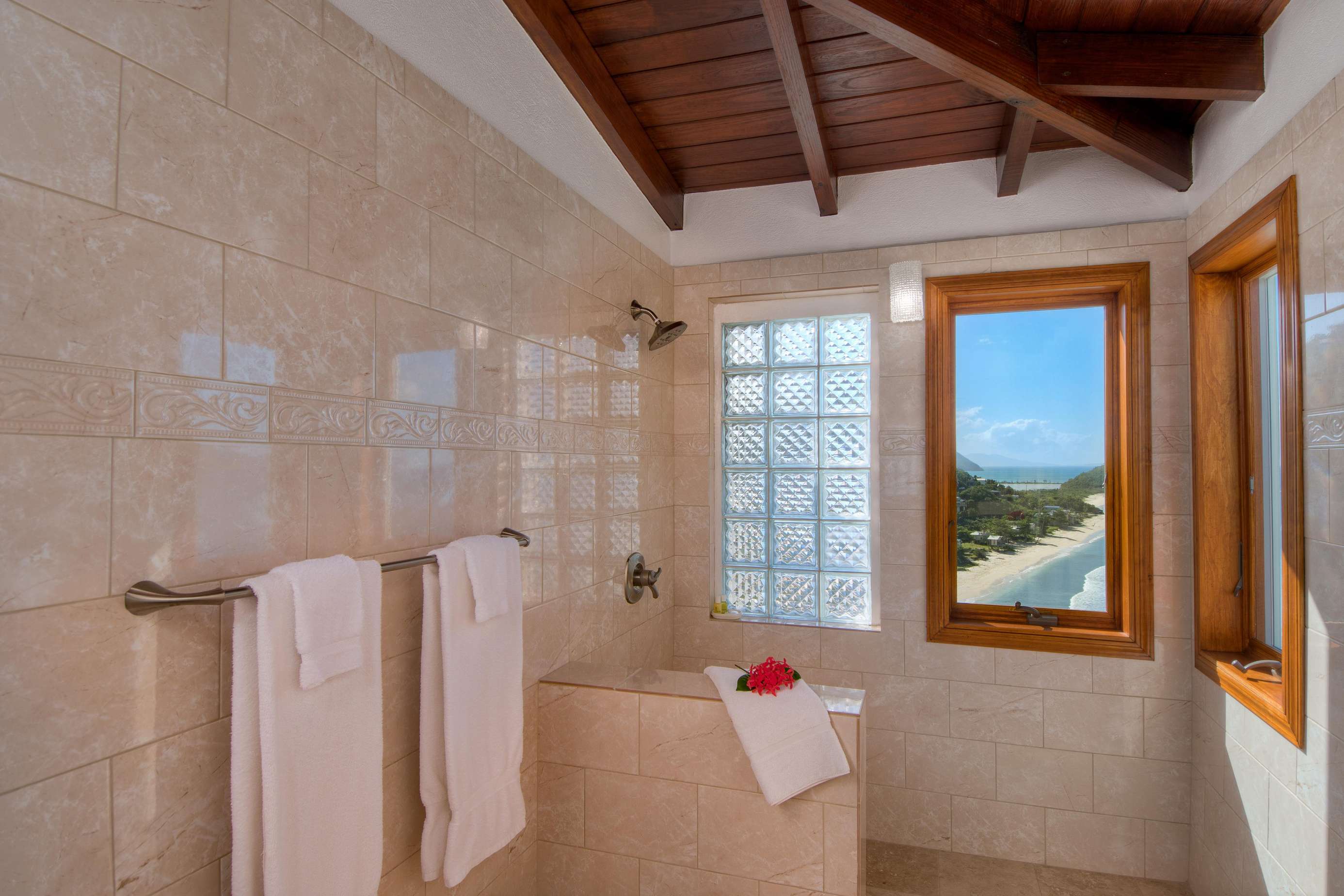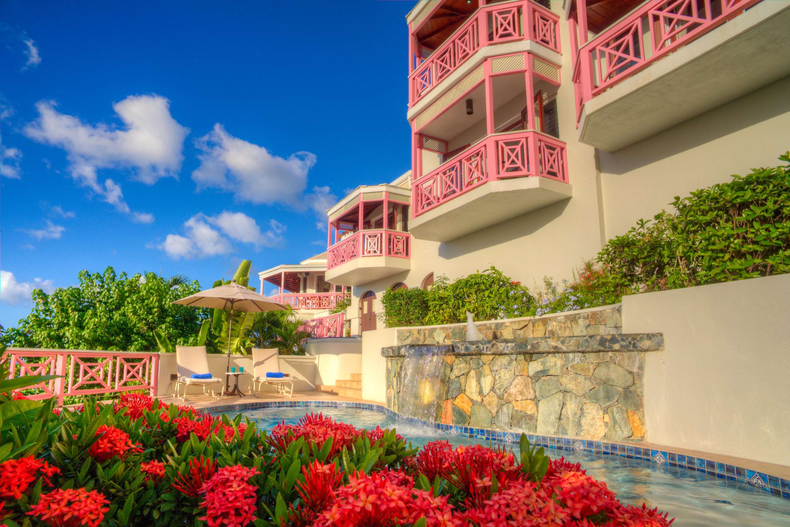 From the moment you arrive through the villa’s elegant courtyard entrance, you’re welcomed into a space that feels both expansive and intimate. The home features five spacious, airy bedrooms, each with en-suite bathrooms and private balconies that capture the trade winds and stunning ocean vistas.