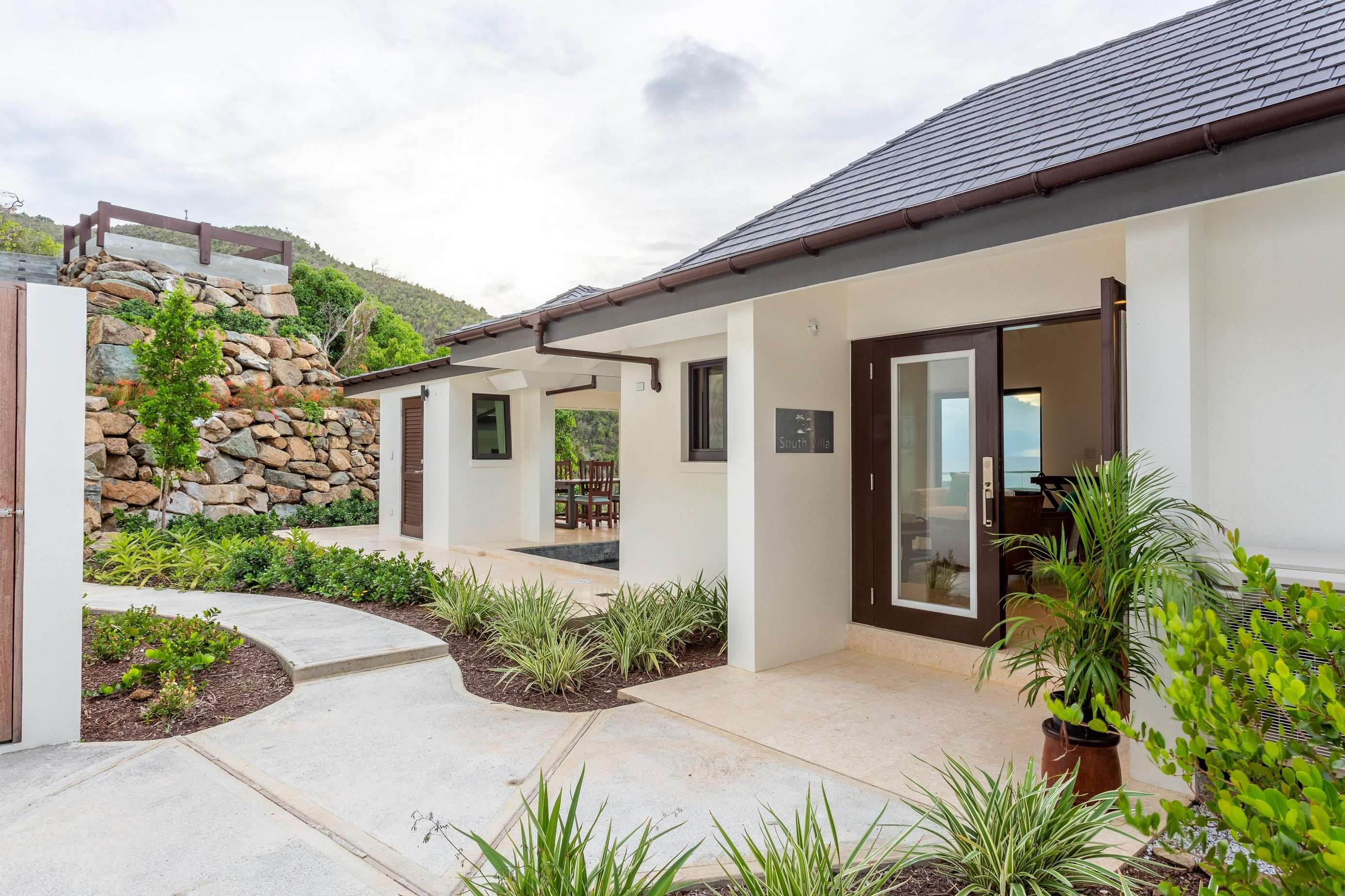 Step outside to the expansive deck and outdoor living area, where island life truly unfolds. Enjoy al fresco dining, fire up the BBQ, or relax in the plunge pool while taking in sweeping views of the Caribbean Sea. Below, a charming garden path leads to a tucked-away sitting area—perfect for morning coffee or sunset cocktails accompanied by the soothing sound of the waves.